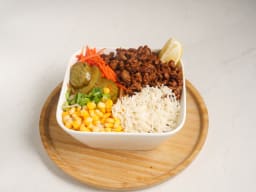 Loaded Rice is meer dan alleen rijst. Het is een compleet gerecht dat alle elementen van een ideale maaltijd combineert: koolhydraten, eiwitten, groenten en kruiden. De basis bestaat uit perfect gekookte, gekruide rijst, verrijkt met verse bosui, knapperige maïs, geraspte wortel en frisse augurk. Dit vormt een smaakvolle, voedzame bodem voor verschillende toppings.